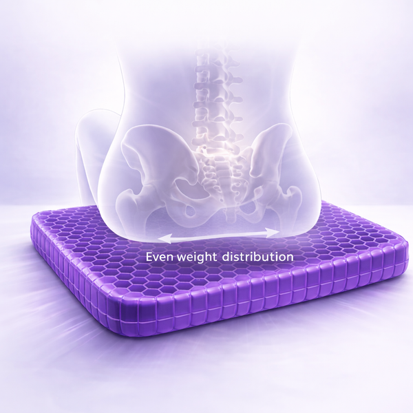 It builds slowly. Pressure in your tailbone. Tightness in your lower back. That constant need to shift. Not because you're done. Because your seat is. Most cushions push back. This gel grid shifts weight sideways so pressure doesn't stay trapped in one spot. You move less. You stay steady. You finish the day feeling clear instead of drained.